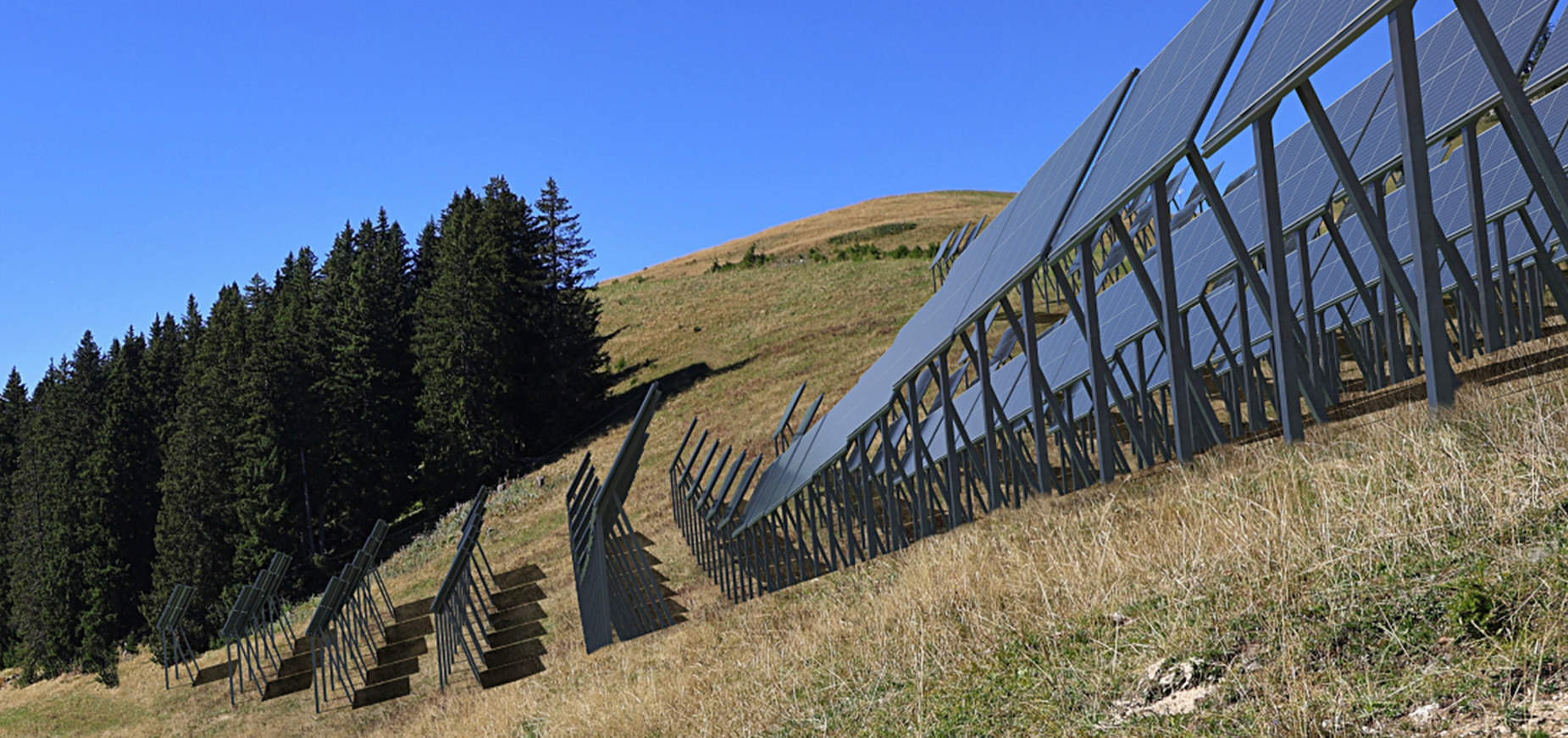 - Ausrichtung des Terrains: Um den erzielten Stromertrag zu maximieren, sind südlich ausgerichtete Hänge zu bevorzugen.