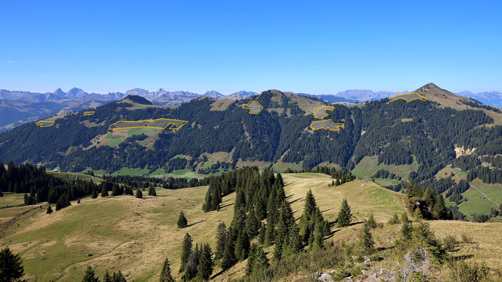 Einsehbarkeit: Sicht von Eggli auf Hornberg und Parwenge